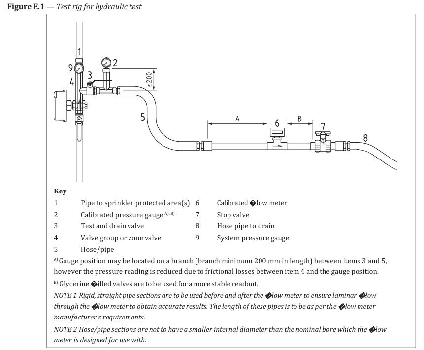 - Take readings from the flow meter and calibrated pressure gauge and check that they both meet or exceed the design requirements of the system. If so, the water supply is deemed to be adequate.